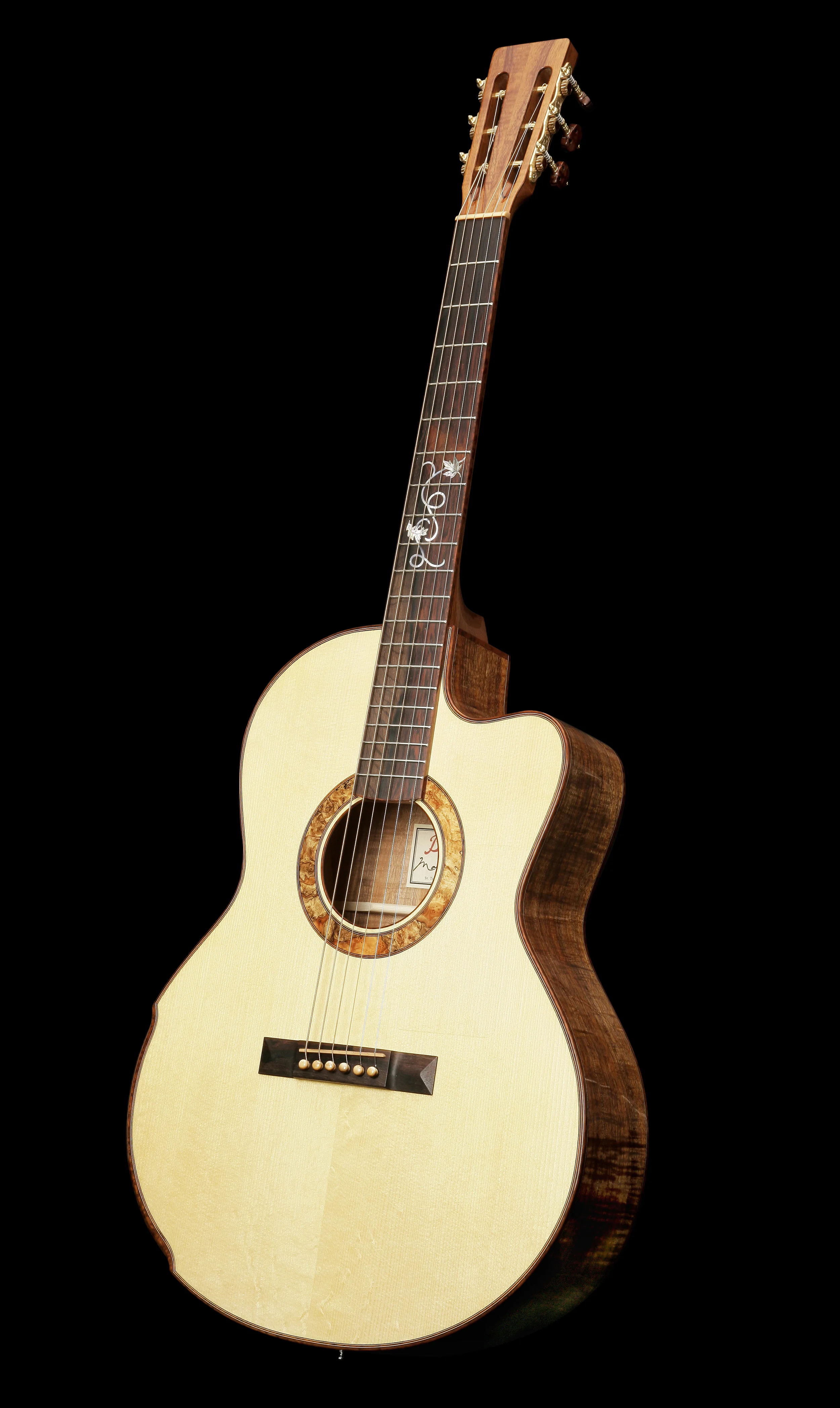 Concert Standard in Honduran Rosewood with venetian cutaway and Laskin Armrest plus side sound port with optional removable cover.
